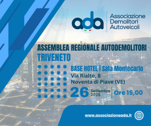 ADA – ASSOCIAZIONE NAZIONALE AUTODEMOLITORI organizza un’Assemblea degli autodemolitori del TRIVENETO.